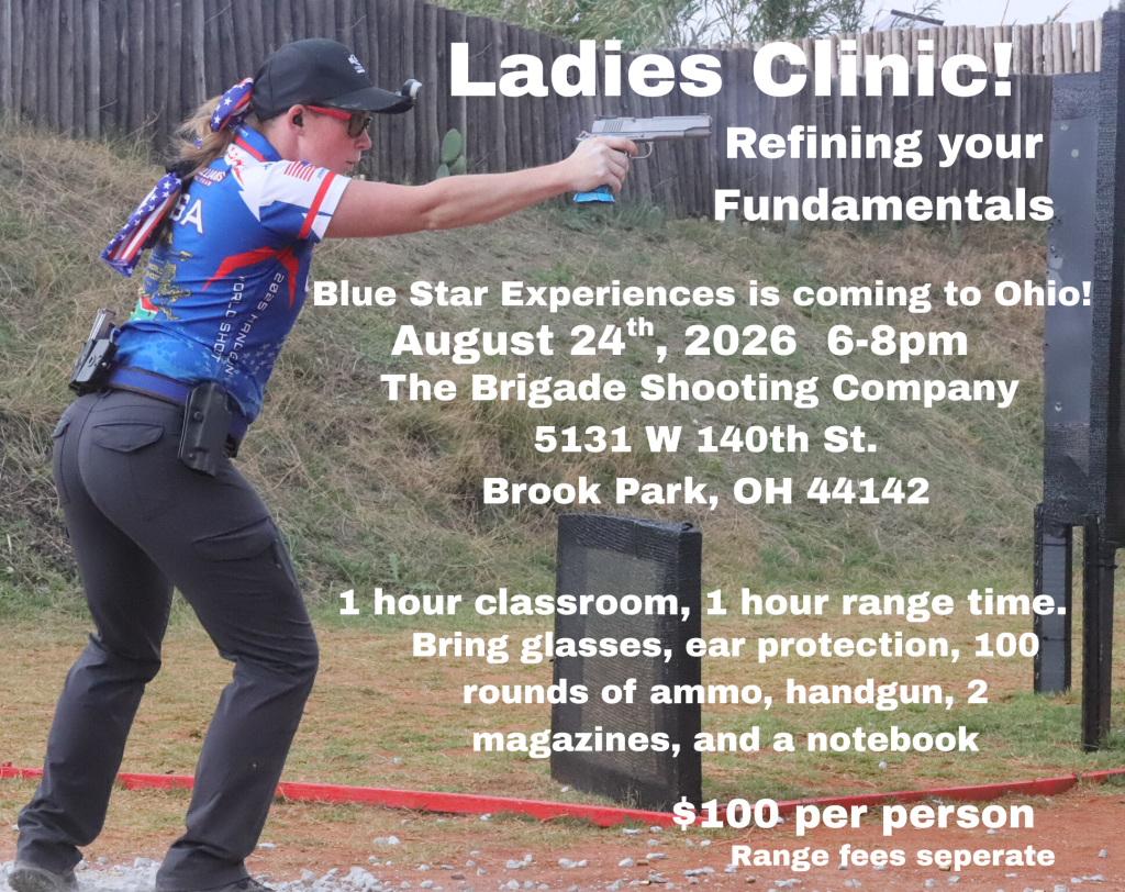 Join me on August 24, 2026 from 6–8 PM at Brigade Shooting Company in Brook Park, Ohio for a focused and fun Ladies-Only Shooting Clinic designed to build confidence, consistency, and solid fundamentals in a supportive environment.